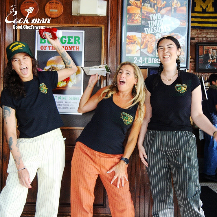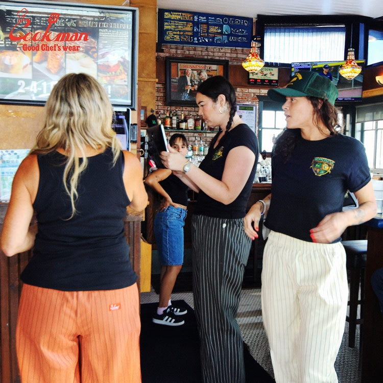 Chef Pants Semiwide The semi-wide pants have a slightly shorter length than regular chef pants, and the hem is tailored with a loose fit. The comfortable and relaxed silhouette is loved not only by chefs but also by skaters.