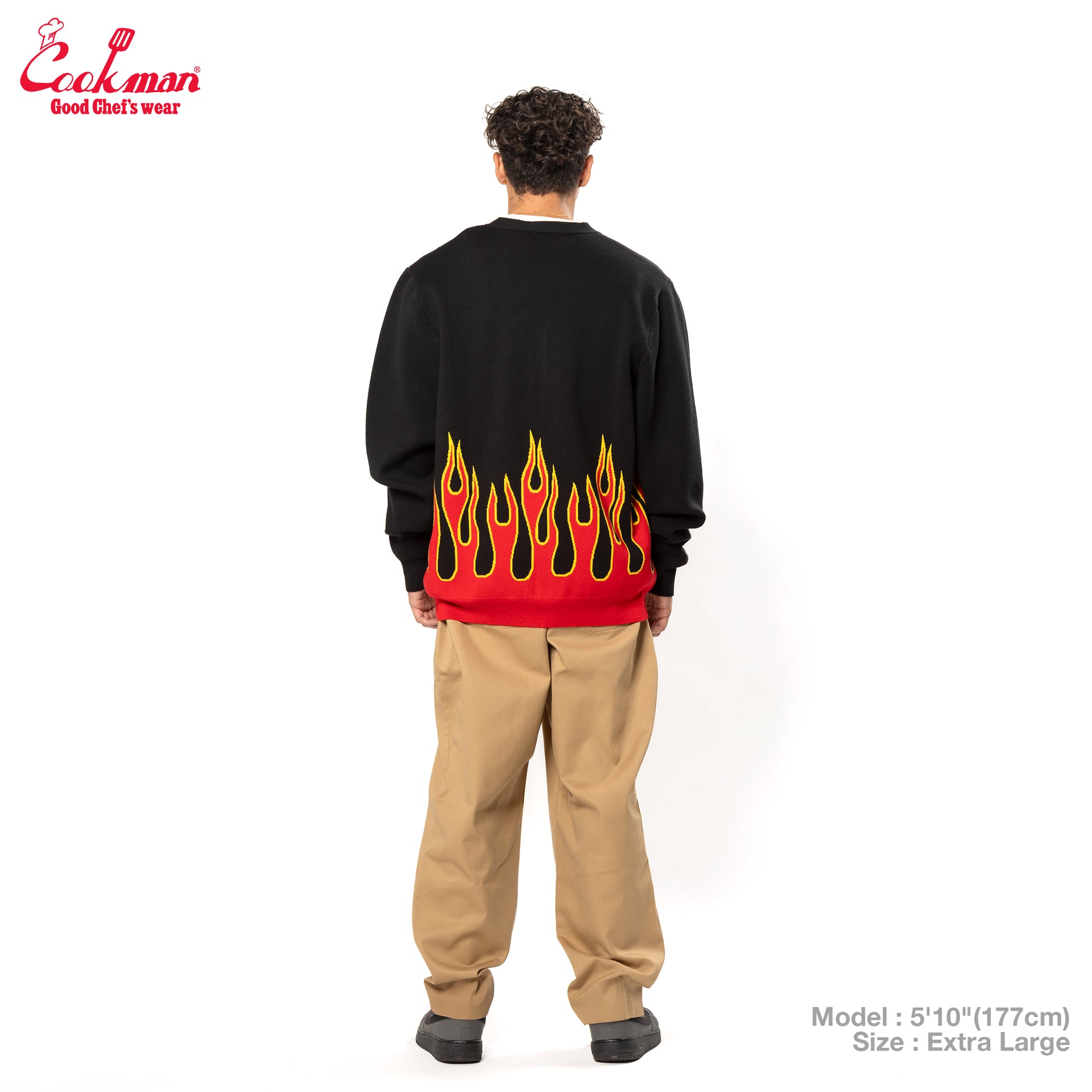 Design A high-impact knit with an all-over flame pattern. You can also match this with our flame print socks for a coordinated look.