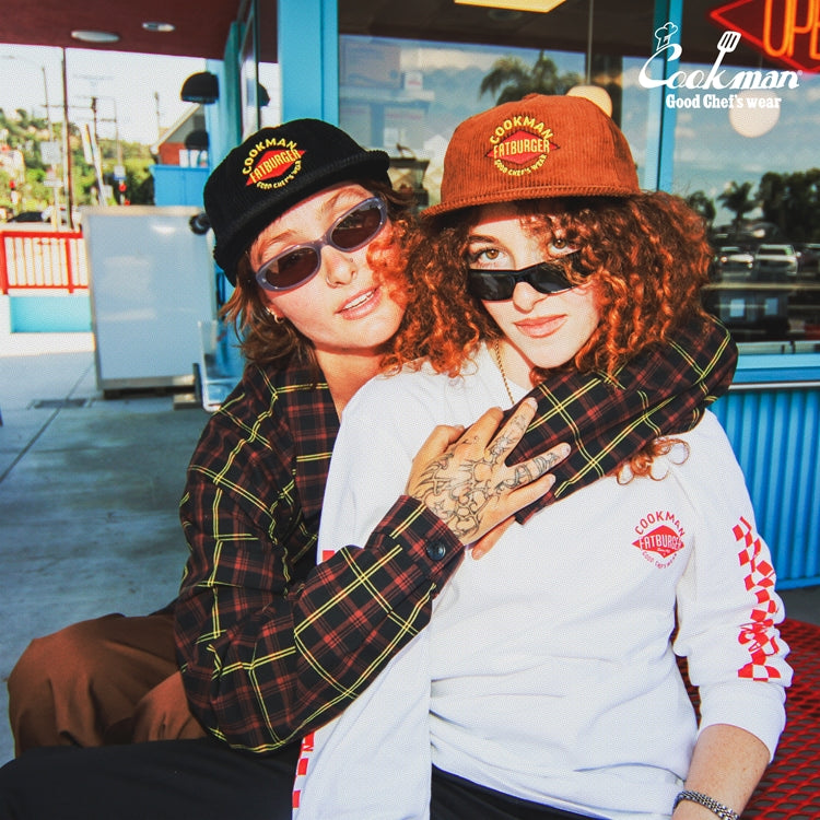 Tartan tissé aux couleurs rouges et jaunes, emblématiques de la marque FATBURGER. Cette pièce exclusive est ornée d’un logo brodé de la collaboration spéciale sur la poitrine.