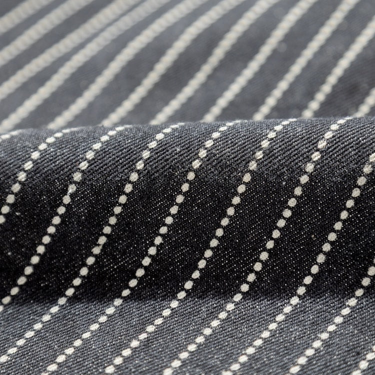 Wabash is a unique dotted stripe pattern created by decoloring indigo fabric.